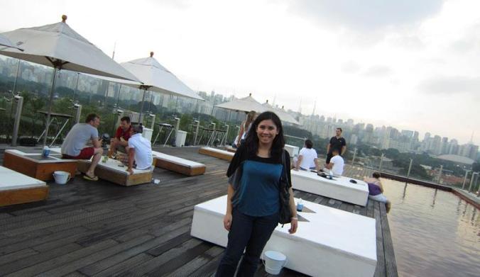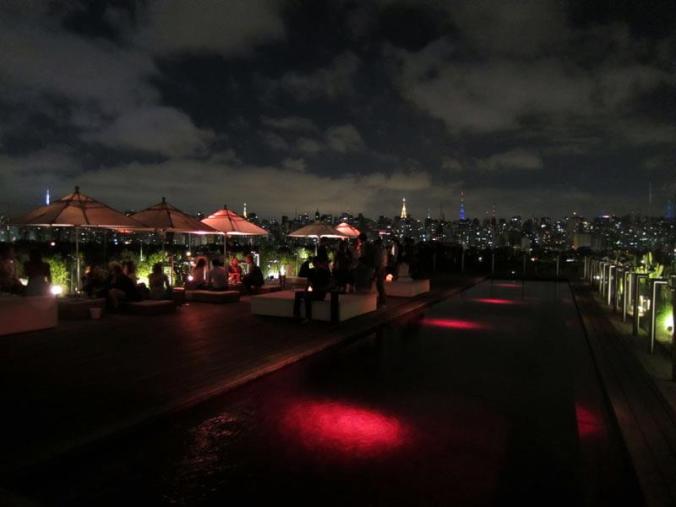 Menjelang sore saya dan rekan kerja mulai kelaparan sehingga kami memutuskan untuk mencoba Skye Restaurant yang berada di lantai teratas hotel. Menurut  rekomendasi dari beberapa majalah yang kami baca di dalam pesawat, restaurant ini sangat populer di kalangan warga Sao Paulo kelas atas, khususnya sebagai tempat berkencan. Benar saja. Di restaurant itu ada balkon dengan tempat duduk dan kolam renang kecil dengan pemandangan indah kota Sao Paulo.