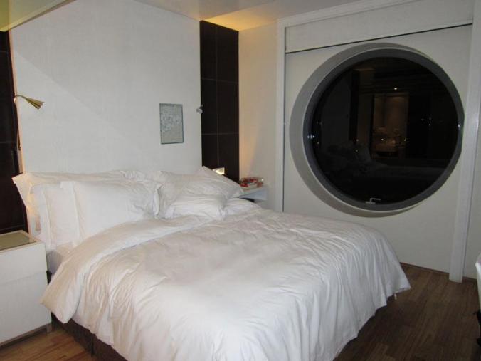 Hotel Unique beraliran minimalis dimana sebagian besar gedung terbuat dari kaca yang memberikan pencahayaan natural pada siang hari. Saya agak kecewa dengan kamar hotelnya. Dengan harga US$400 semalam (tidak termasuk sarapan), kamarnya kecil, dan tidak menyediakan kopi, kettle, ataupun air putih yang merupakan standar hotel-hotel berbintang lainnya. Tapi memang bentuk kamarnya sangat unik karena partisi antara kamar tidur dan kamar mandi bisa dilipat, sehingga bisa mandi berendam dalam bath tub sambil nonton acara TV.