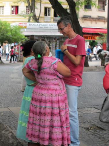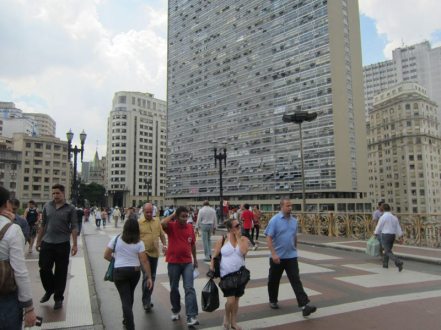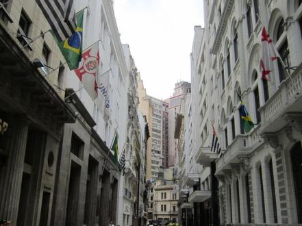 Perjalanan dari katedral Sao Paulo menuju gereja Sao Bento sebenarnya tidak terlalu jauh. Sekitar 20 menit jalan kaki. Untuk menuju gereja Sao Bento harus melalui  financial district. Kebetulan kami ke daerah itu pada waktu istirahat siang, sehingga  melihat banyak orang berdasi menikmati makan siang di restoran-restoran kecil pinggir jalan.