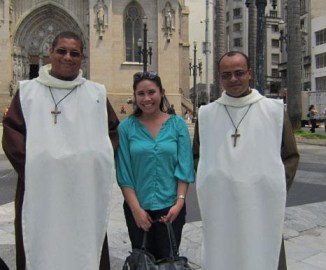 Kebetulan ketika berada di gereja Sao Bento, saya bertemu dengan 2 orang biarawan. Saya pun  memberanikan diri untuk berfoto bersama. Jarang-jarang kan foto bareng biarawan Benediktin di Sao Paulo.