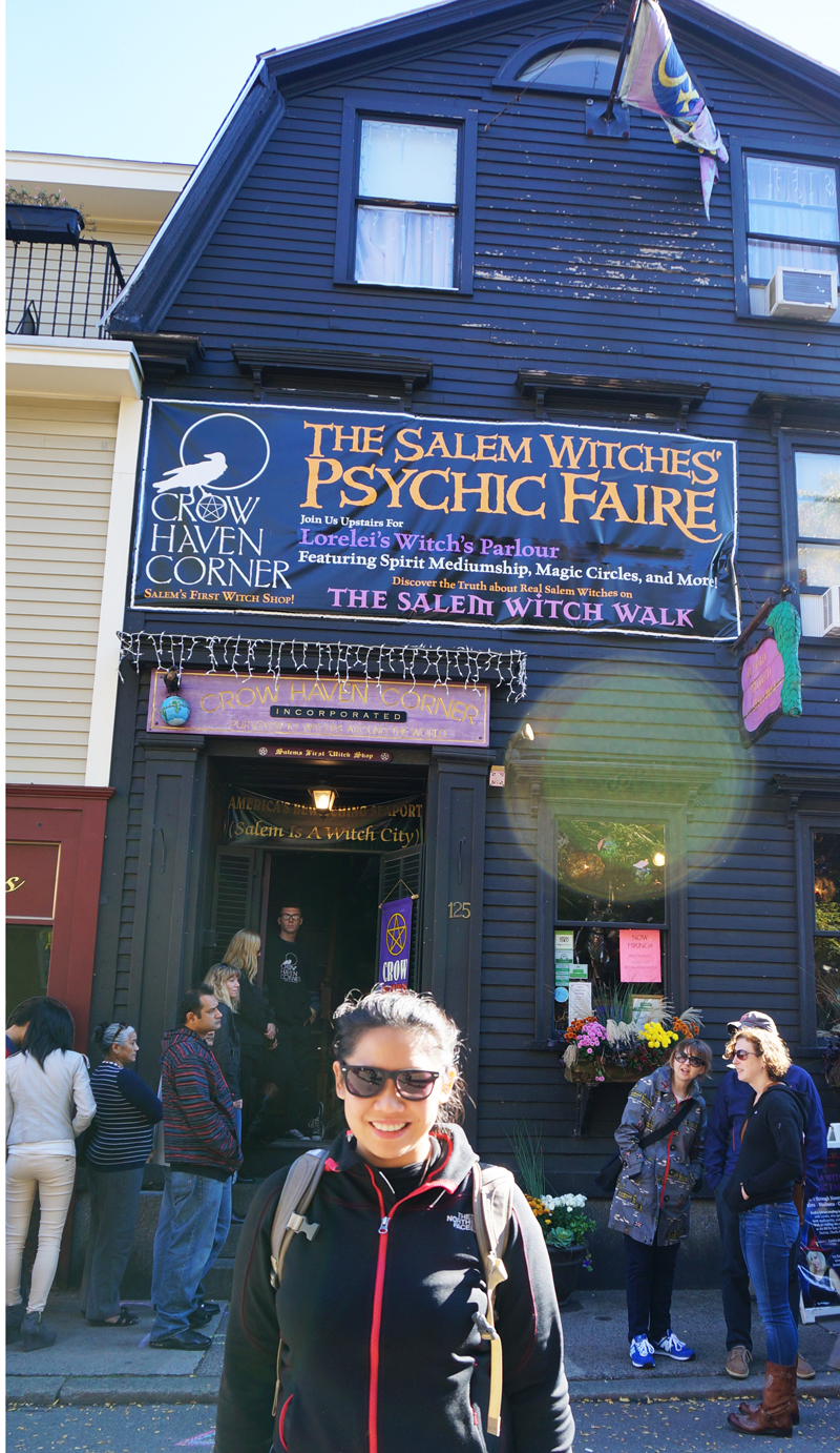 Sesampainya di stasiun kota Salem, saya dan Niness harus jalan kaki sekitar 15 menit ke pusat kota. Tujuan pertama adalah Salem Witch Museum. Hari itu antrean ke museum panjang sekali dan harus menunggu sekitar 1 jam. Di dalam museum kami dibawa petugas masuk ke dalam ruangan yang besar dan dipersilahkan duduk di kursi atau di lantai. Setelah ruangan terisi penuh, lampu dipadamkan. Ternyata sekeliling kami terdapat diorama seukuran manusia yang menceritakan kisah tragis kota Salem. Ceritanya cukup menarik, tapi terlalu lama dan kualitas dioramanya kurang bagus sehingga tidak meyeramkan.